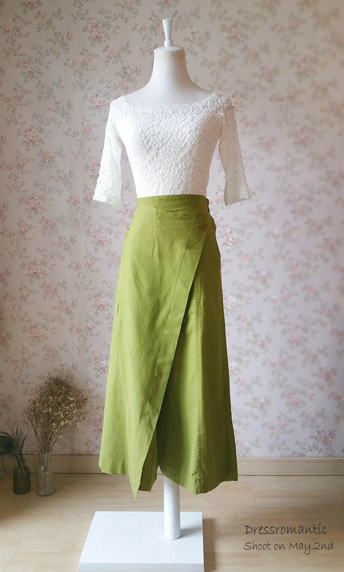 Lime Green Wrap Pants Wide Leg Linen Pants Women Pants Wrap Pants Wide Leg Trousers Palazzo Pants
