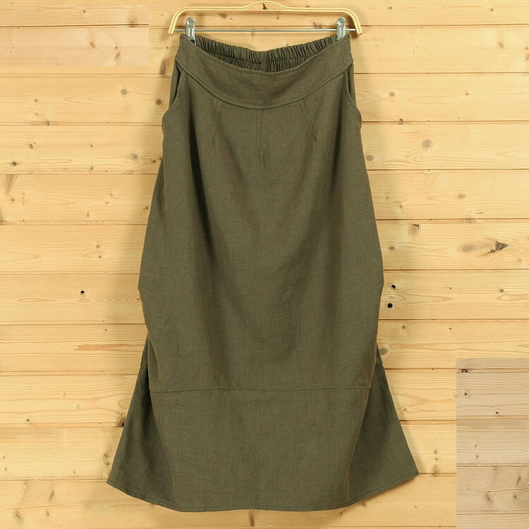 Women Linen Cotton Skirts Casual Long Linen Skirt Linen Maxi Skirt Army Green Black, One Size