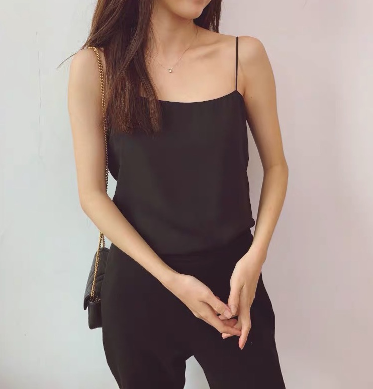 Women Simple Chic Black Boat Neck Chiffon Tanks Tops Wedding Bridesmaid Chiffon Cami Camisole Summer Loose Shirts