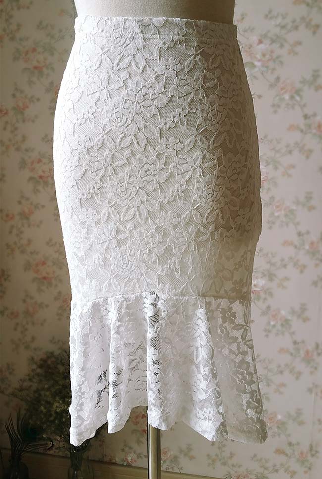Retro Style Lace Mermaid Midi Skirt Ivory White Midi Length Lace Skirt Custom Plus Size