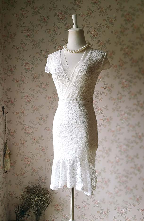 A vintage inspired high to low ivory white black lace skirt for your wedding. This short white lace skirt perfectly matches any slim fitting top for Cocktail / Party / Evening and Wedding party! This lace skirt is featured with high quality stretchy lace material, elastic waist with modal lining, so it's a very fashionable, feminine and simple chic. We can custom make it as of your measurements if you need. Any other problem about it, kindly let us know.