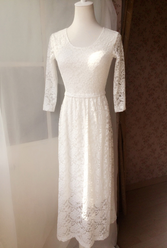 * Full white lace dress is must have in every girl's closet. This white lace dress is simple cutting, easily wear in spring, autumn and winter.