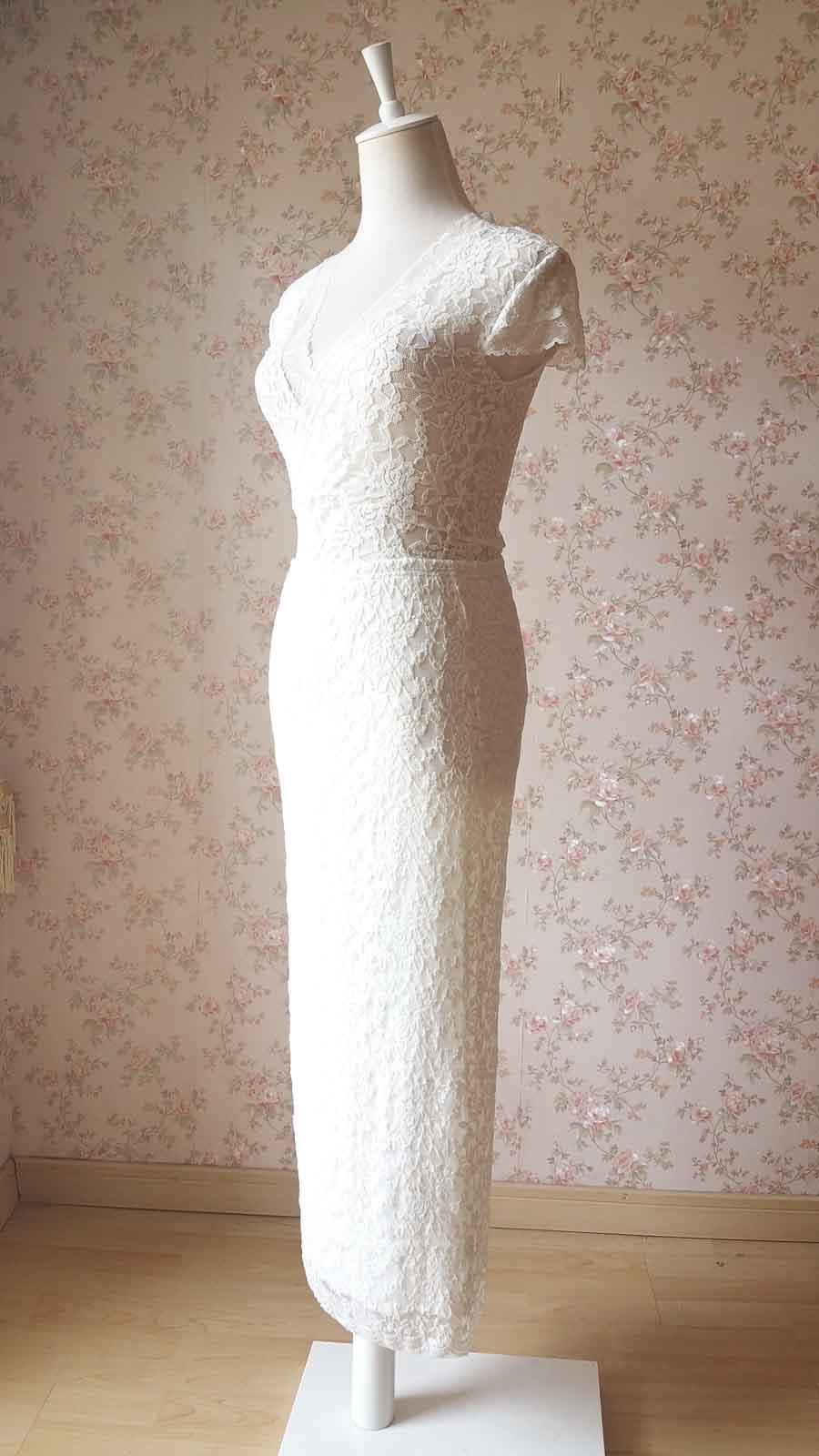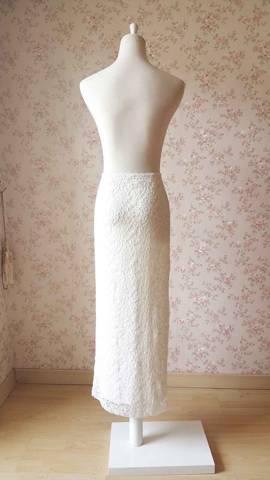 Women Slim Fitted Long Lace Skirt Ivory White Long Lace Pencil Skirt Custom Plus Size