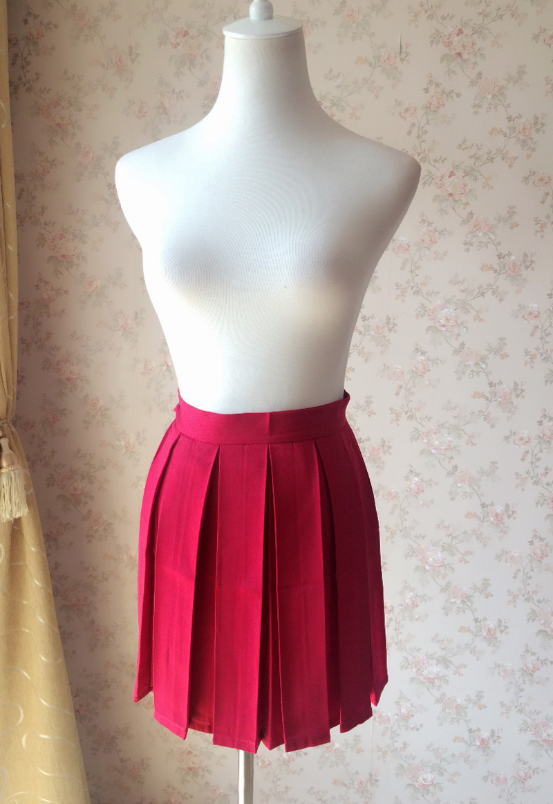 RED Pleated Mini Skirt , Women Girl Pleated Skirt Outfit, Plus Size Red Pleated Skirt US0-US18