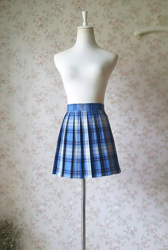 A-line Dark Green Plaid Skirt, Women Girl Plaid Skirt Outfit, Plus Size Women Girl Short Pleated Plaid Skirt