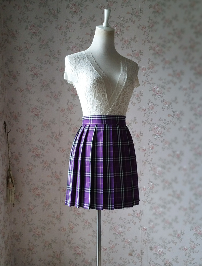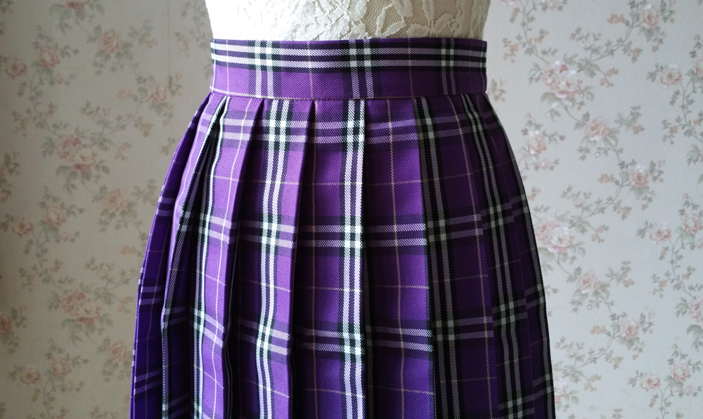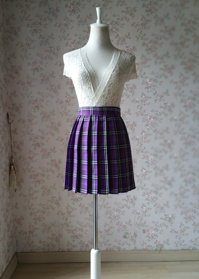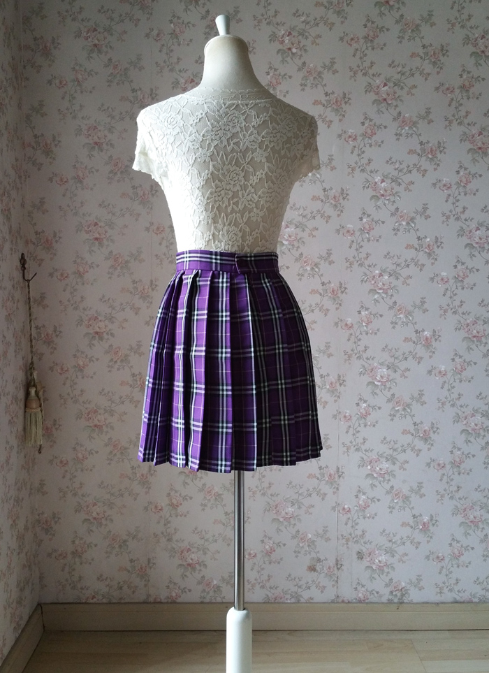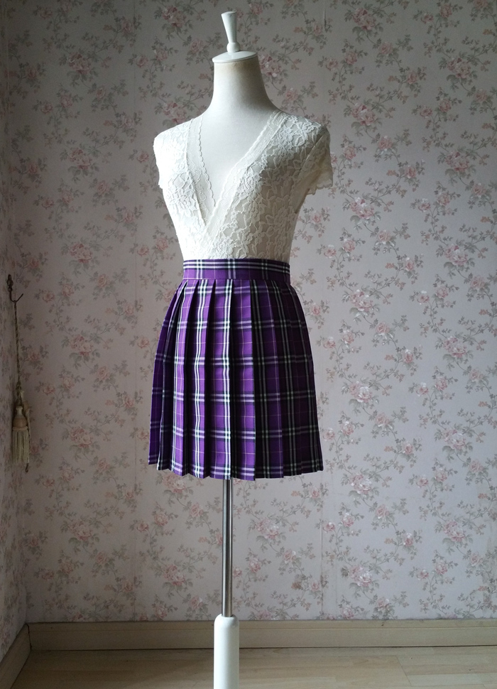 A-line PURPLE PLAID SKIRT Outfit Women Girl Pleated Plaid Skirt Plus Size Mini Plaid Skirt