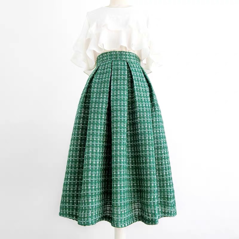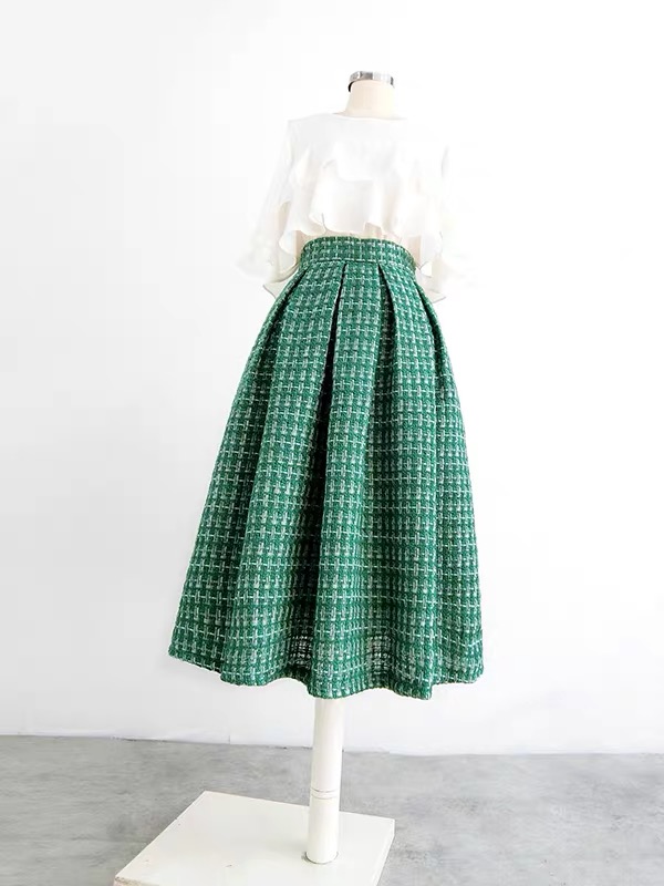 WOMEN Winter Pleated Plaid Skirt GREEN PLAID PLEATED SKIRT WARM WOOL HOLIDAY OUTFIT PLEATED WOOLEN SKIRT CUSTOM PLUS SIZE PLAID SKIRT HIGH WAISTED WINTER MIDI SKIRT. OUTFIT, Elegant Winter Wool Skirt Pleated Skirt with 50s Style Skirts is easily match any tops. It can keep you warm very well and look still chic and elegant.