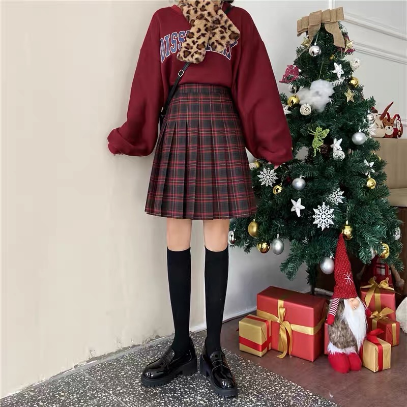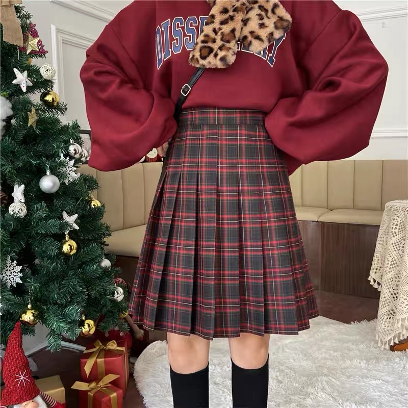 Classic Red Plaid Skirt Outfit Plus Size High Waisted Plaid Skirt A-line Pleated Plaid Skirt School Girl Plaid Pleated Skirt