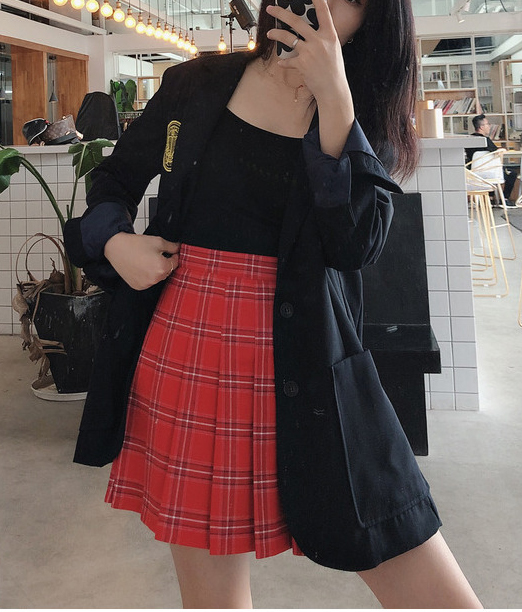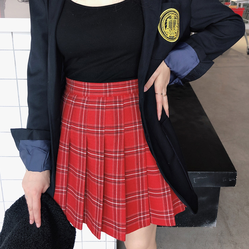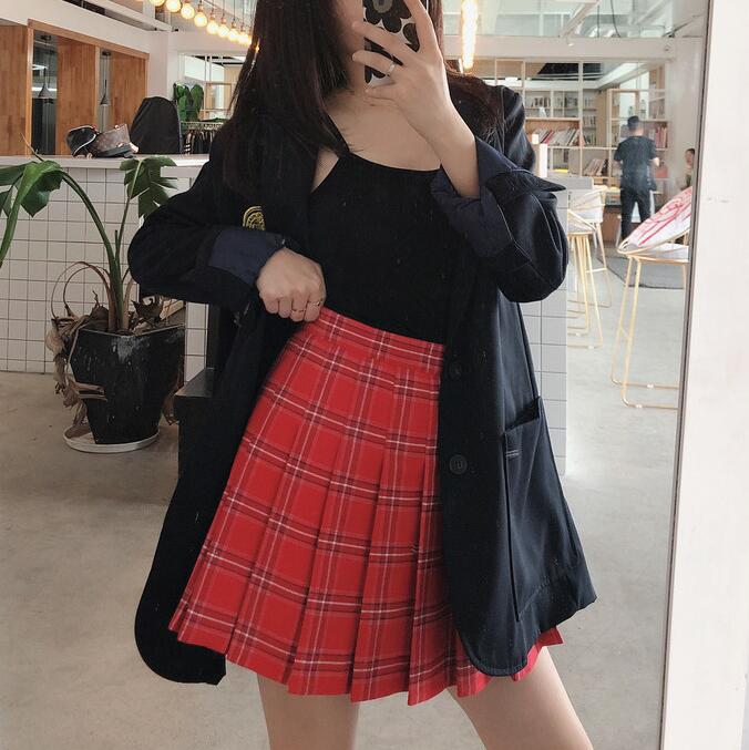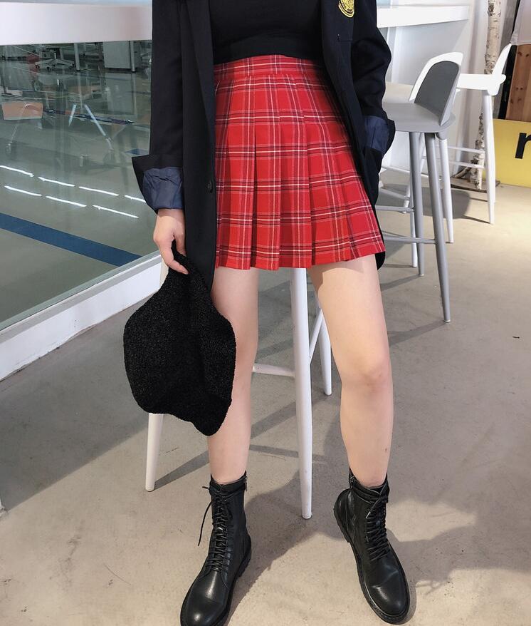 RED PLAID SKIRT RED PLEATED PLAID SKIRT WOMEN GIRL RED PLEATED SKIRT CAMPUS STYLE RED PLAID SKIRT SCHOOL GIRL PLAID PLEATED SKIRT PLUS SIZE PLAID SKIRT A-LINE HIGH WAIST SHORT PLEATED PLAID SKIRT