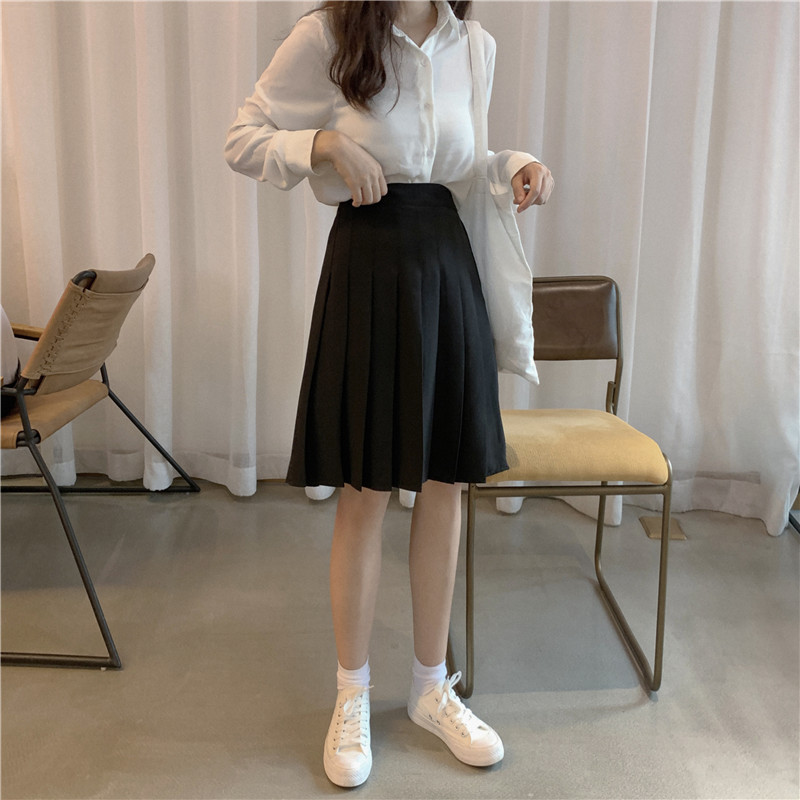 FASHION BLACK PLEATED SKIRT OUTFIT WOMEN GIRL Pleated Skirt HIGH WAISTED PLUS SIZE PLEATED SKIRT A-LINE KNEE LENGTH PLEATED PLAID SKIRT US0-US16