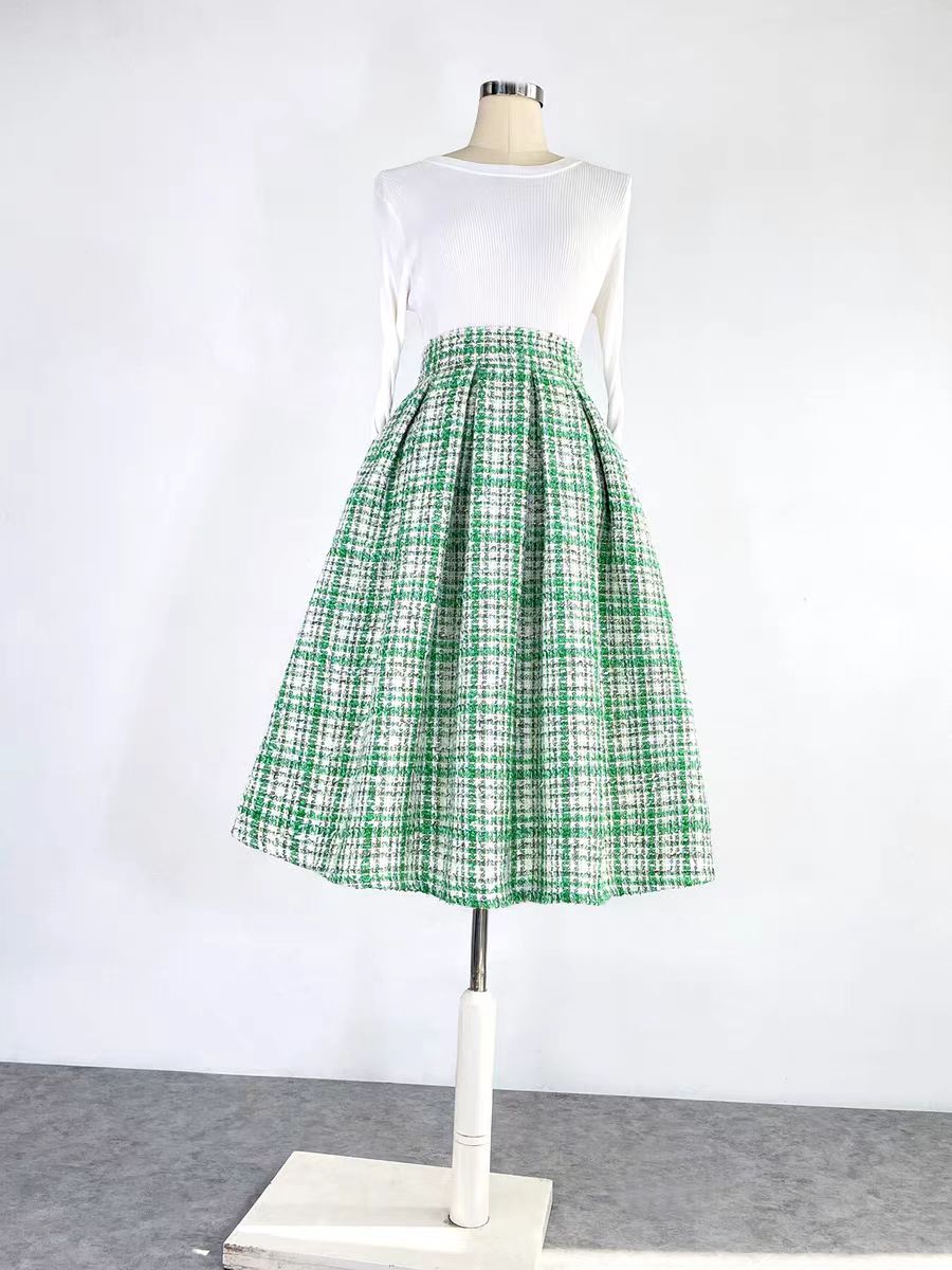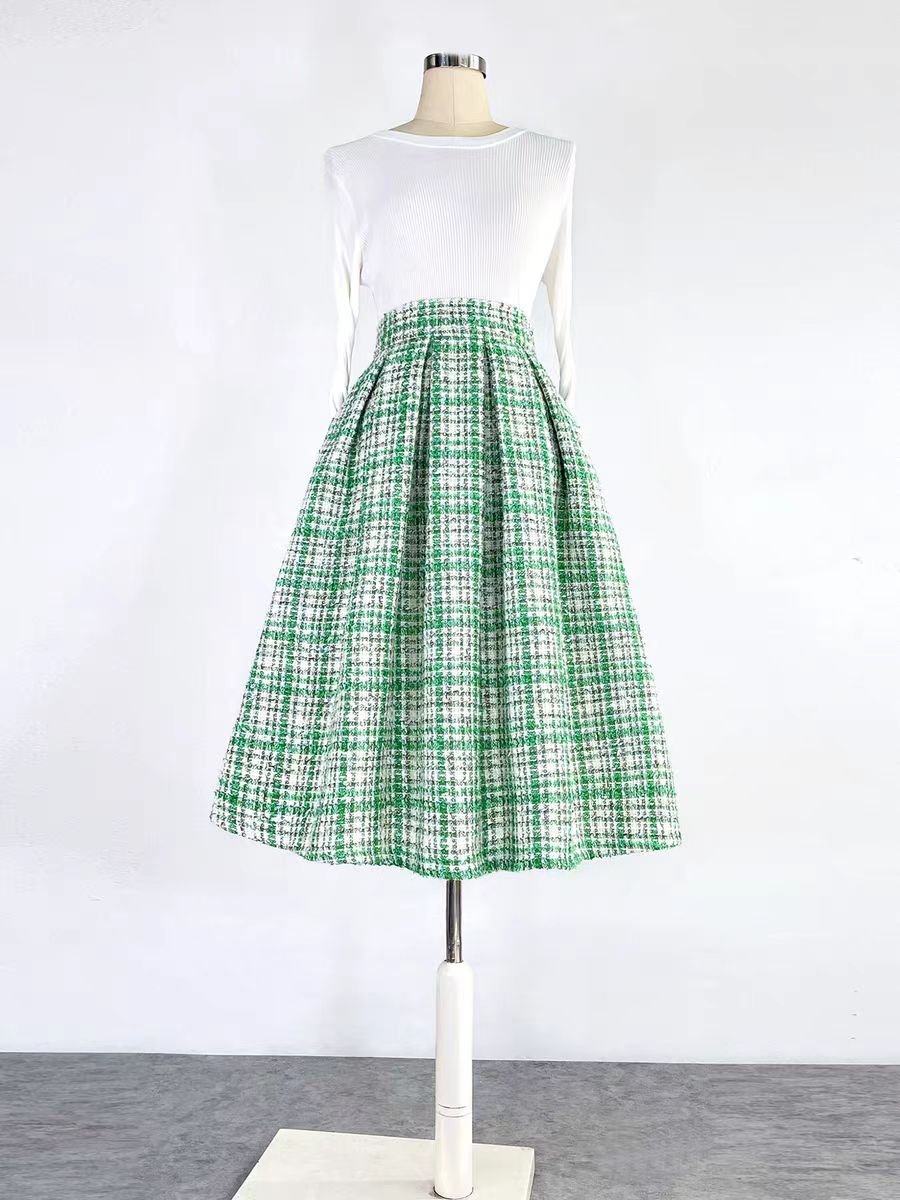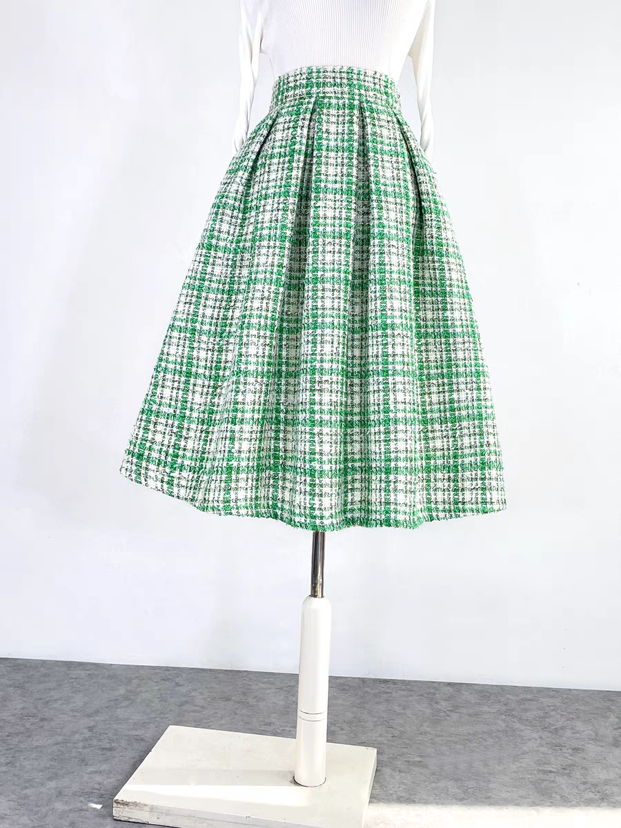 Winter GREEN TWEED Wool Skirt Pleated Midi Holiday Skirt Warm Midi Party Skirt Plus Size Christmas Skirt Outfit