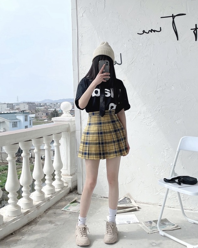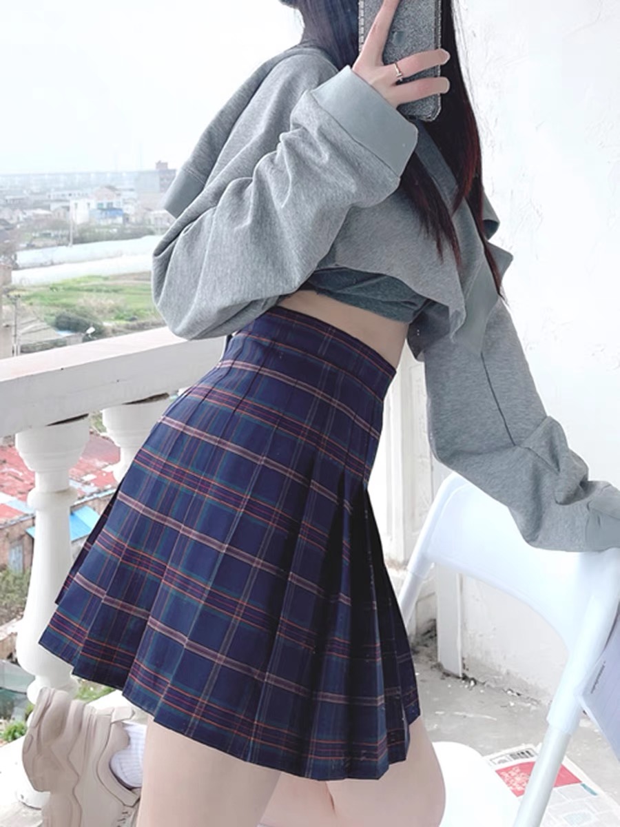 Dark Green Pleated Plaid Skirt Outfit Women Girl A-line Plus Size Mini Pleated Plaid Skirt