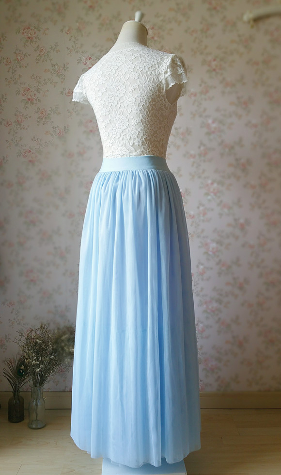 LIGHT BLUE TULLE MAXI SKIRT OUTFIT HIGH WAISTED FLOOR LENGTH TULLE SKIRT WEDDING TULLE SKIRT PLUS SIZE TULLE MAXI SKIRT