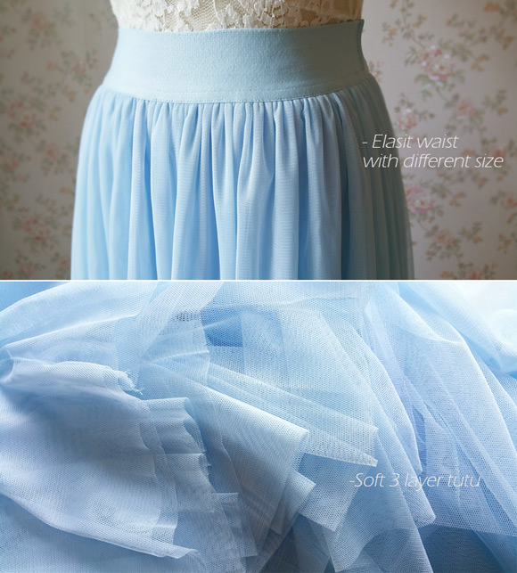* Very BEAUTIFUL light blue tulle skirt. Many buyers asked for this color ever, and we finally make it. Hope this pretty can bring you sweet memory, for your wedding, for your party, and for many other special moments.