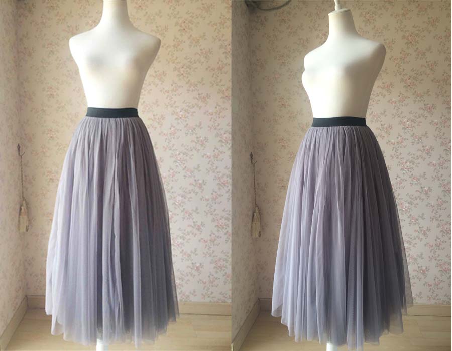 Gray Full Tulle Skirt Gray Wedding Tulle Skirt Bridesmaid Tulle Skirt Outfit Plus Size Tulle Skirt