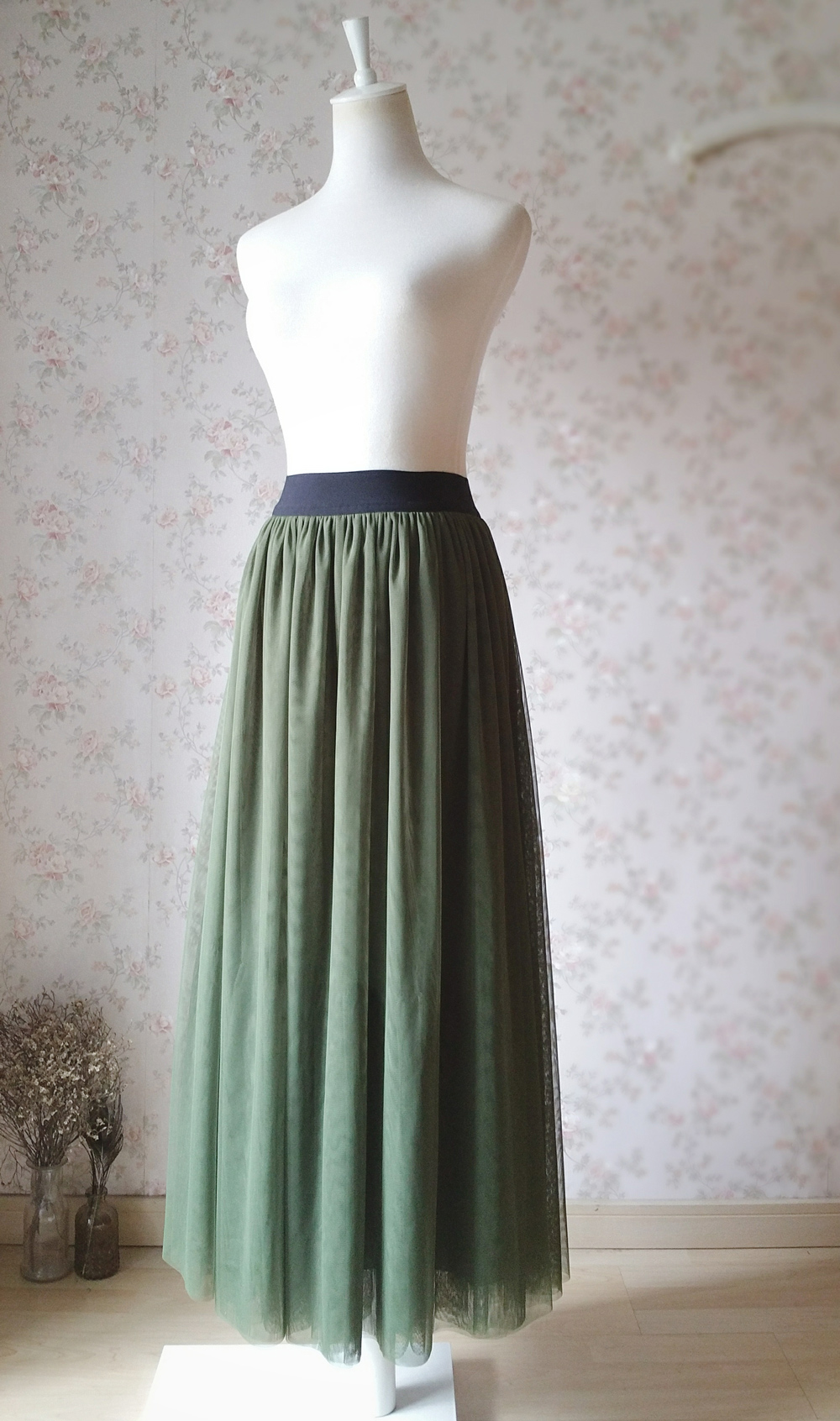 Handmade Army Green MAXI SKIRT, Plus size Tutu Skirts, Maxi Tulle Skirt, Gray tulle wedding bridesmaid skirt, CUSTOM
