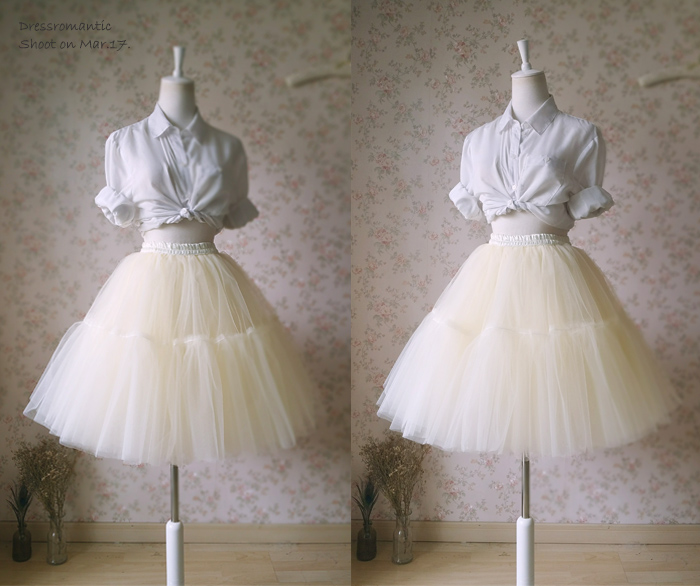 Ivory Cream Full Midi Tulle Skirt Women Girl Fashion Skirts NWT