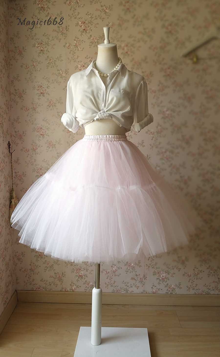 Light Pink A Line Midi Skirt Women Girl Tulle Skirts