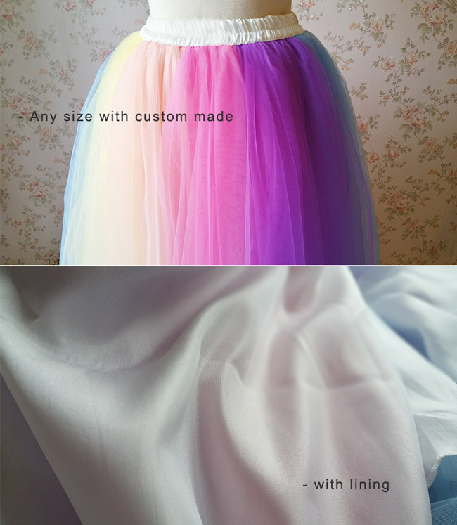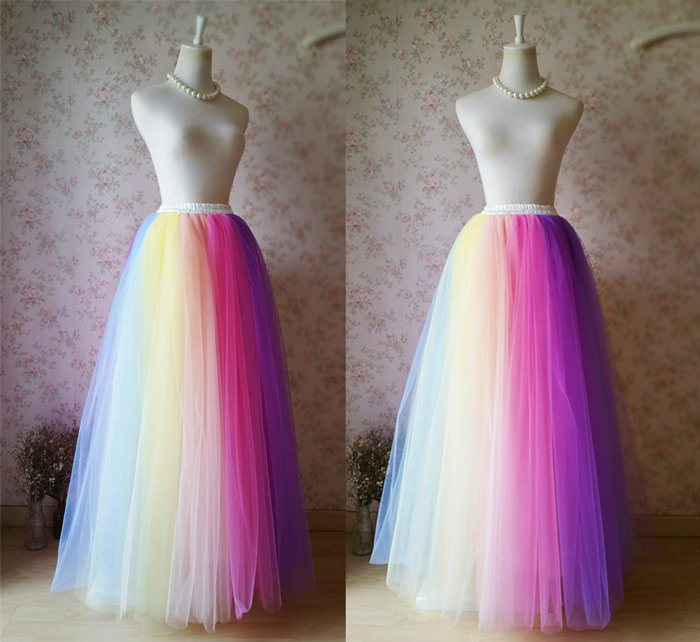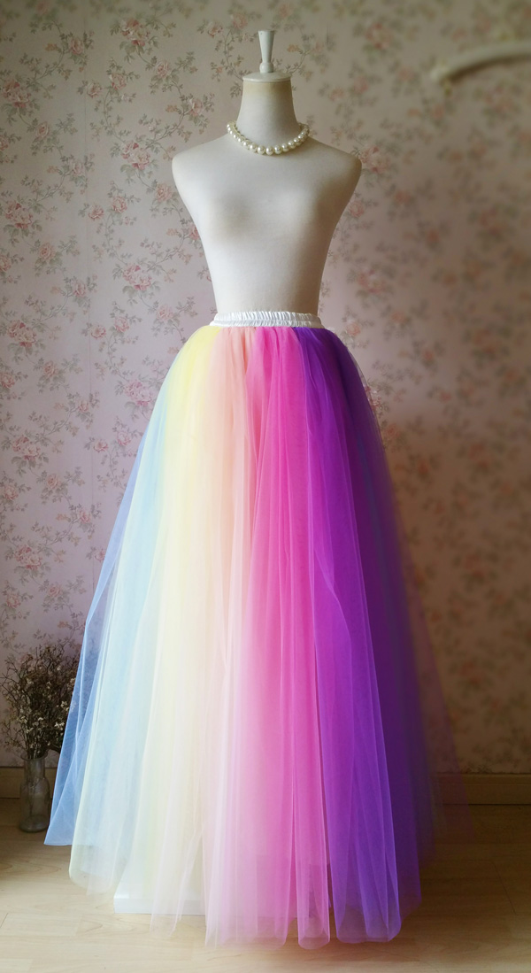 Adult Tulle Long Rainbow Skirt Custom Plus Size Rainbow Color Tulle Skirt Holiday Outfit