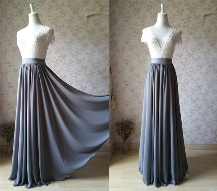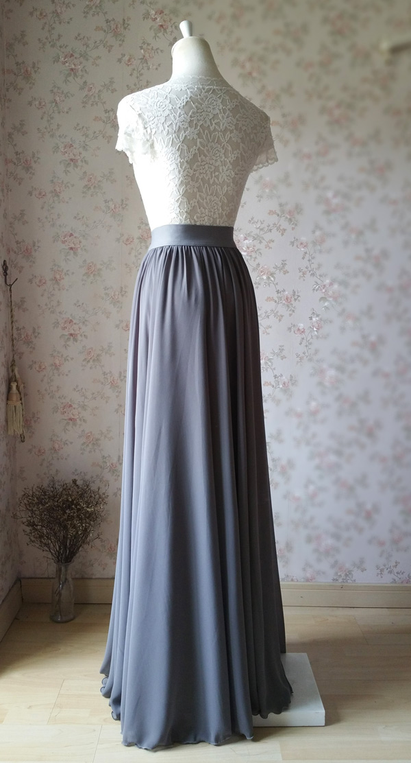 Gray Floor Length Chiffon Skirt Gray Wedding Skirt Bridesmaid Chiffon Skirt Outfits Plus Size