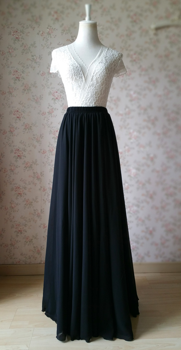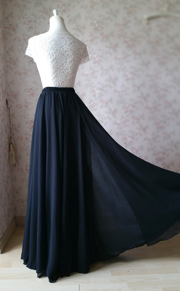 Black Chiffon Long Skirts High Slit Chiffon Skirt Summer Beach Maxi Skirt Plus Size Chiffon Skirt