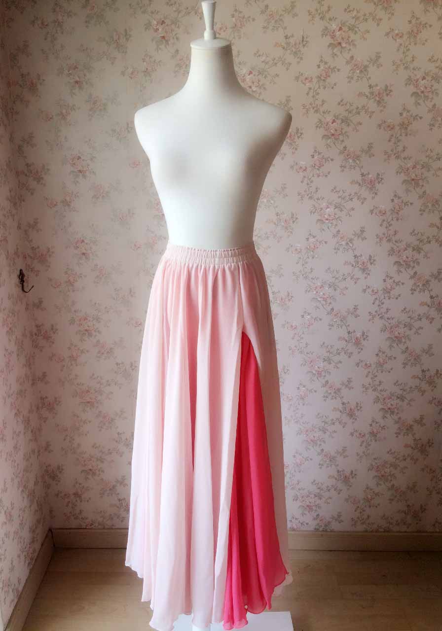 Red Elastic Waist 2 Layer Chiffon Split Skirts
