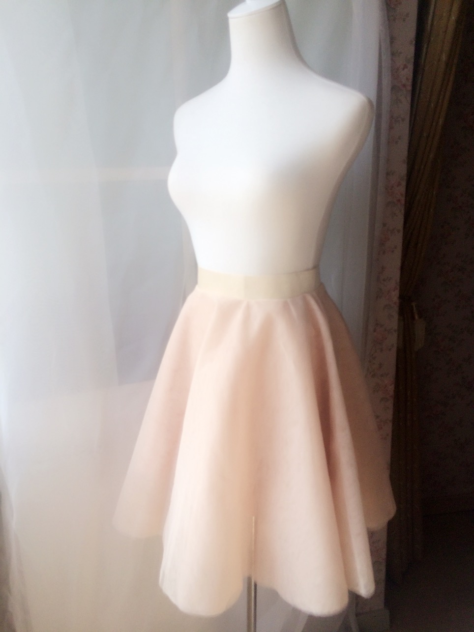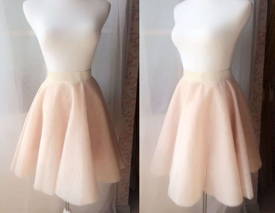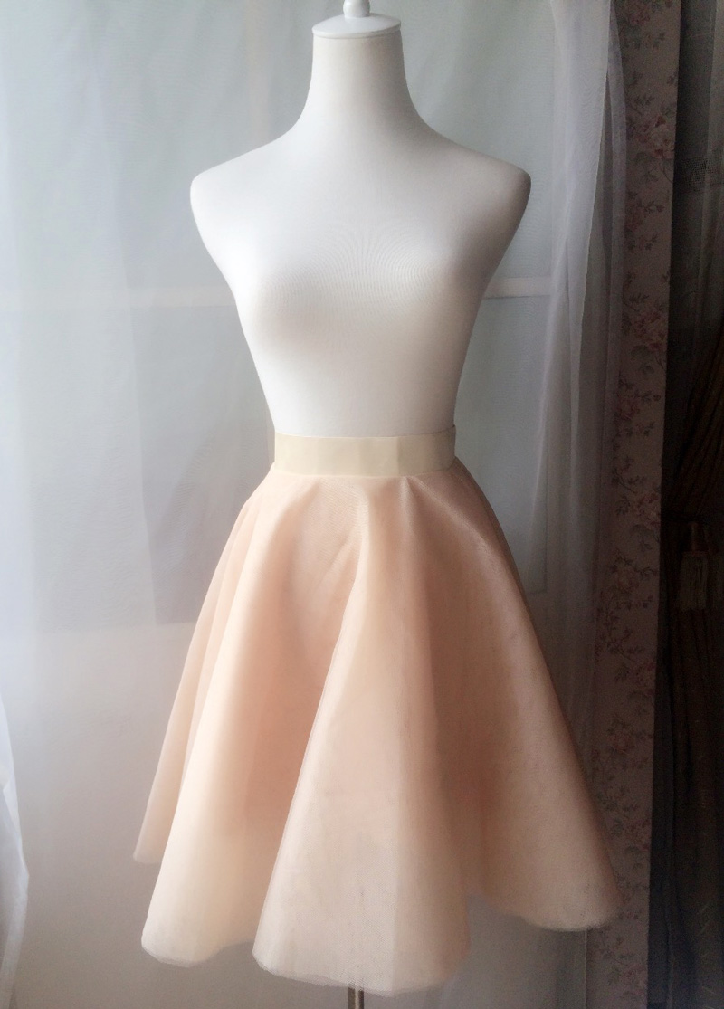 Nude Knee Length Tulle Circle A Line Skirt