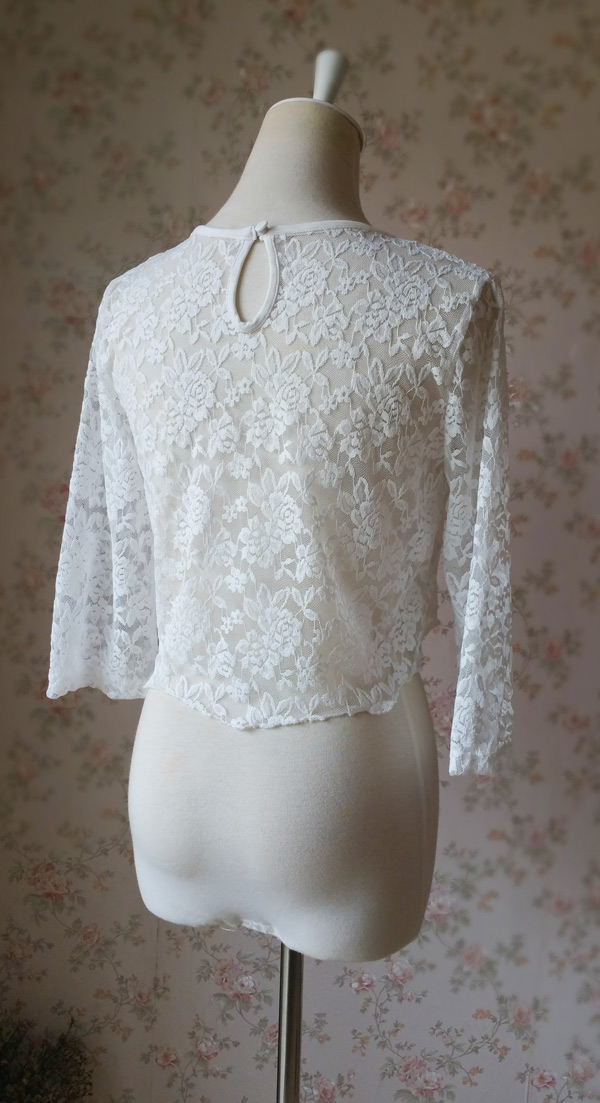 Women Sleeve Crop Lace Top Plus Size Crop Top Blouse Crop Sleeve Lace Wedding Top Bridesmaid Lace Top