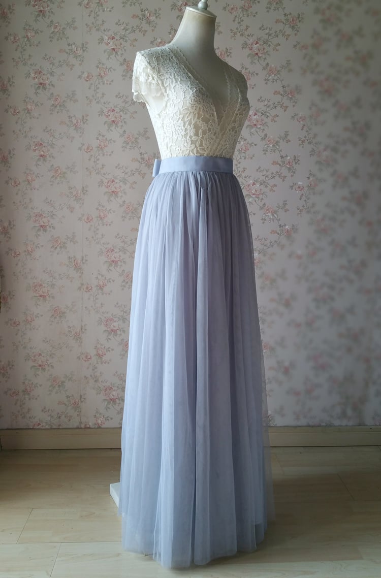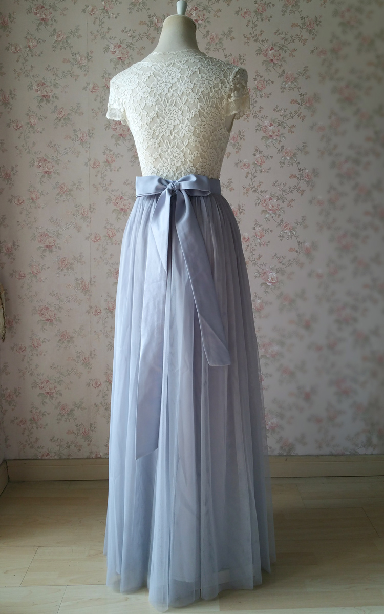 Silver Gray Maxi Full Tulle Skirt GRAY Wedding Bridesmaid Tulle Skirt High Waist