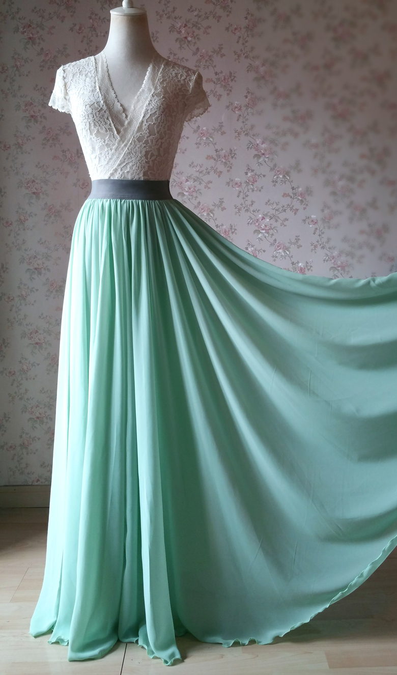 Mint Green Long Chiffon Skirt Plus Size Chiffon Bridesmaid Skirt Beach Wedding Skirt