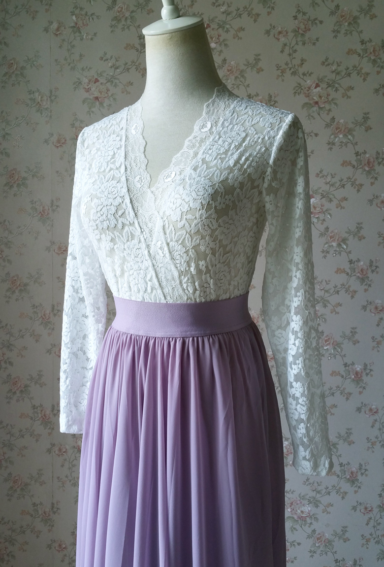 Ivory White Long Sleeve Lace TOPS Wedding Bridesmaid Lace Tops Custom Size