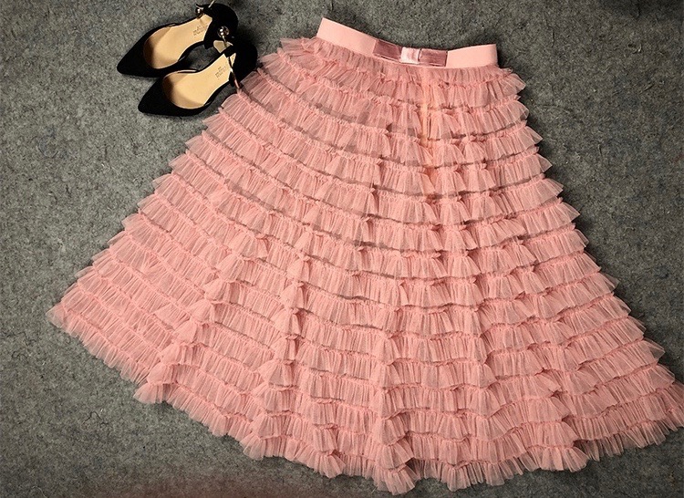 BLUSH PINK TIERED TULLE MIDI SKIRT PRINCESS SKIRT