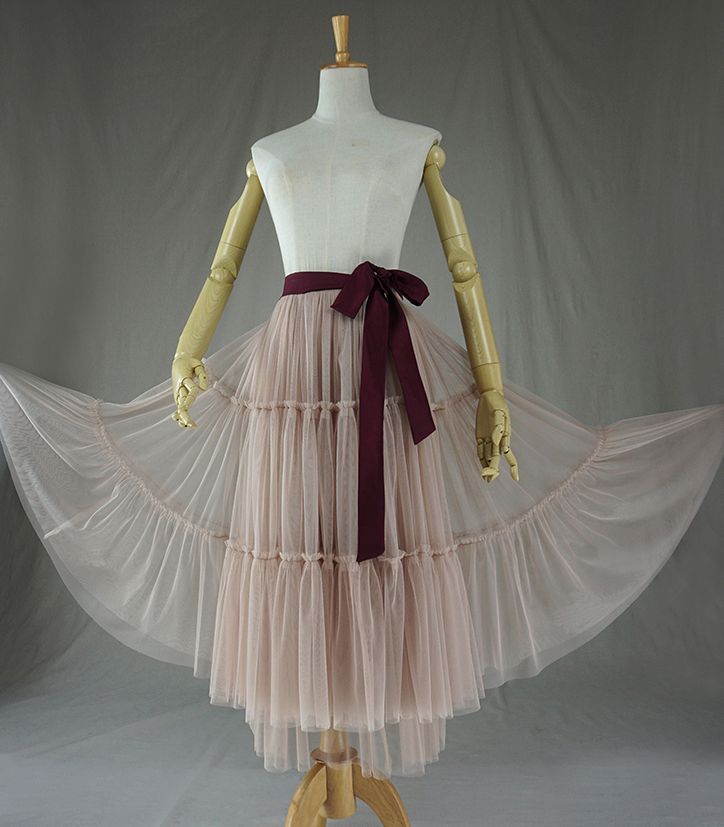 Nude Pink Tiered Tulle Skirt with Belt Wedding Bridesmaid Tulle Outfit
