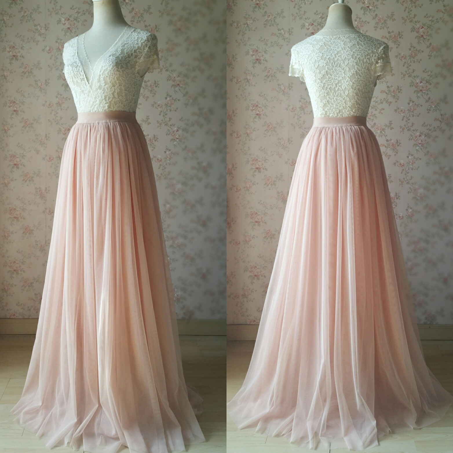 Blush Floor Length Tulle Skirt Blush Wedding Bridesmaid Tulle Skirt Photo Shoot