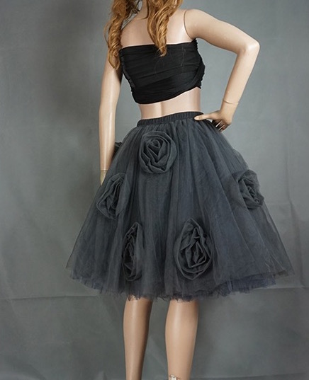 Flower Ruffle Midi Tulle Skirt Gray Princess Midi Tulle Skirt