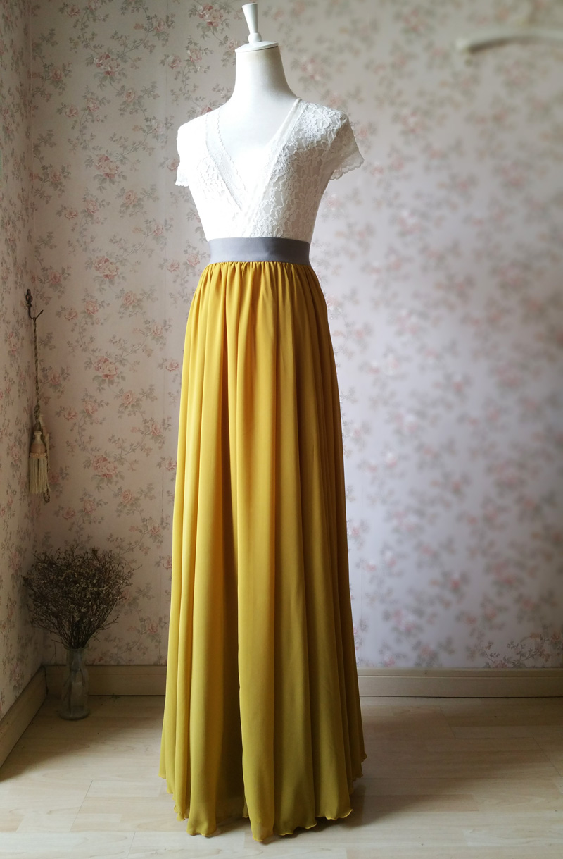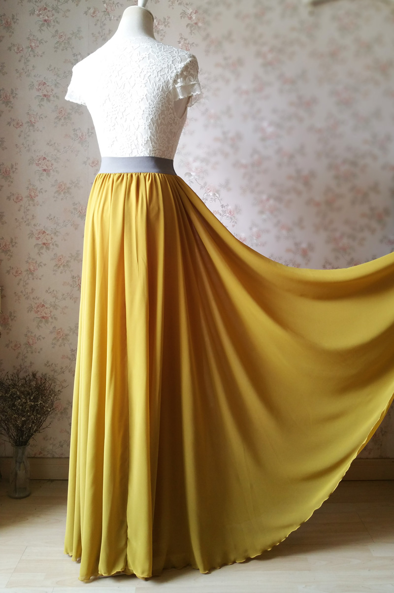 Yellow Long Chiffon Skirt Plus Size Chiffon Yellow Bridesmaid Skirt Beach Wedding Skirt
