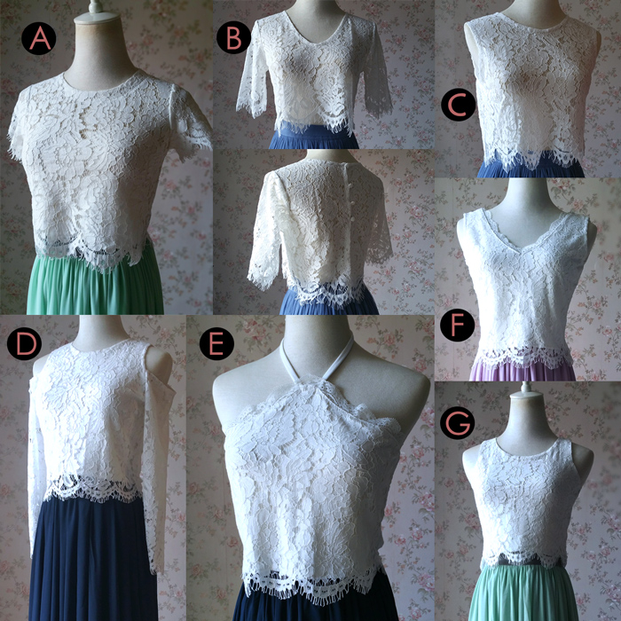 - We offer many other lace styles (style A - style G) . Special for wedding bridesmaids tops and skirt outfit . If you need other style, please just add the style number in the note.