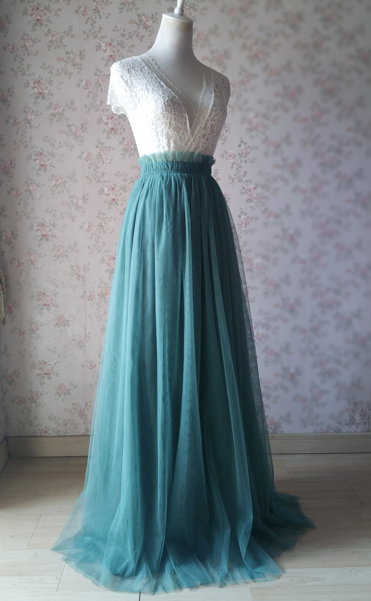 Misty Green Long Bridesmaid Skirt Green Wedding Tulle Skirt Plus Size