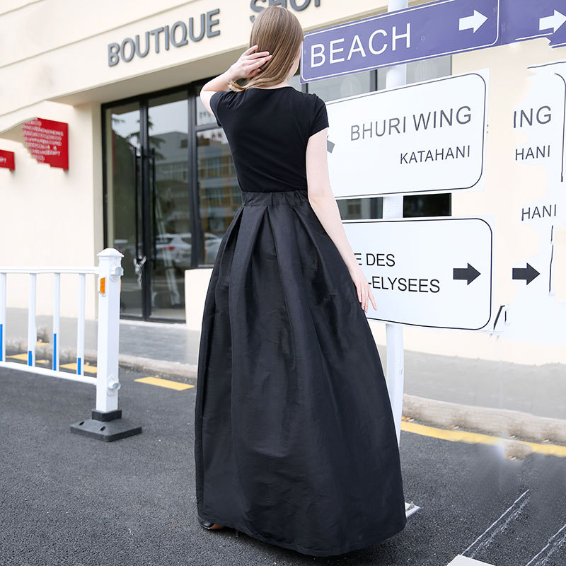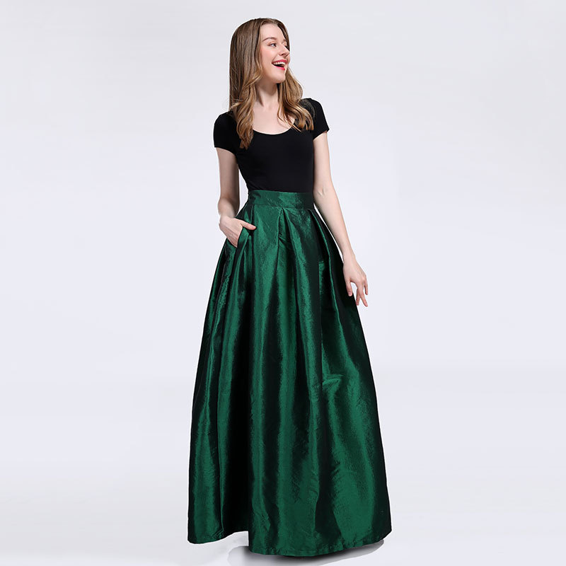 Women Black Maxi Skirt Full Long Pleated Skirt Taffeta High Waist Ruffle Party Skirt with Pocket -40in long