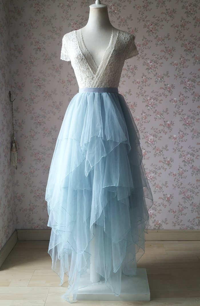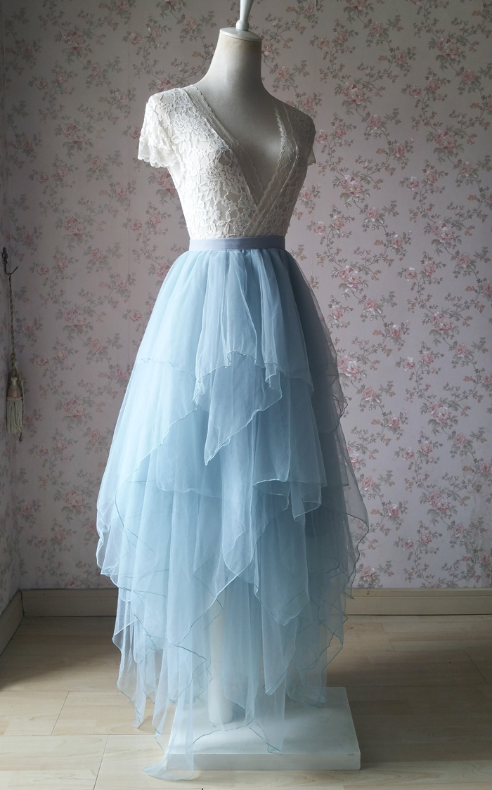 Dusty Blue irregular tulle skirts, women tulle skirt, which is fixed waist. We can make it in any size, and we also offer other colors for choice.