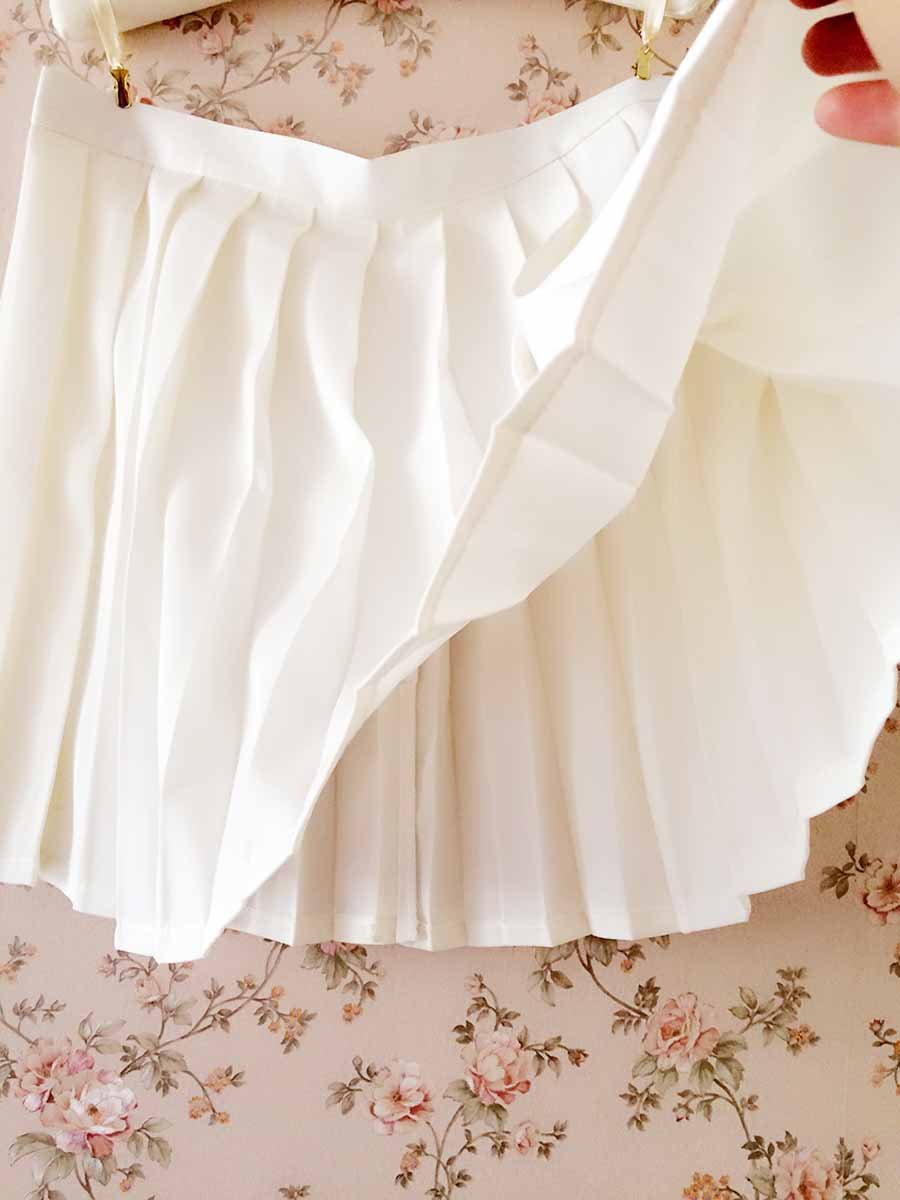 White Pleated Mini Skirt Women Girl A-line Plus Size Short Pleated Skirt US0-US18