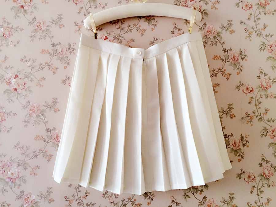 White Pleated Mini Skirt, Women Girl A-line Plus Size Short Pleated Skirt, Pleated Skirt Outfit, US0-US18