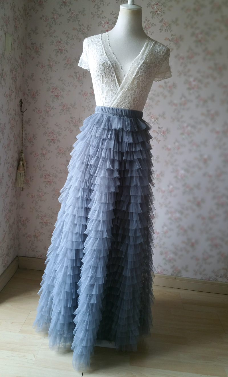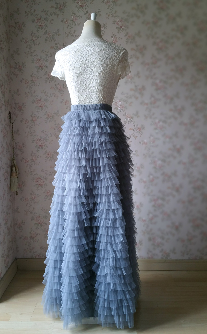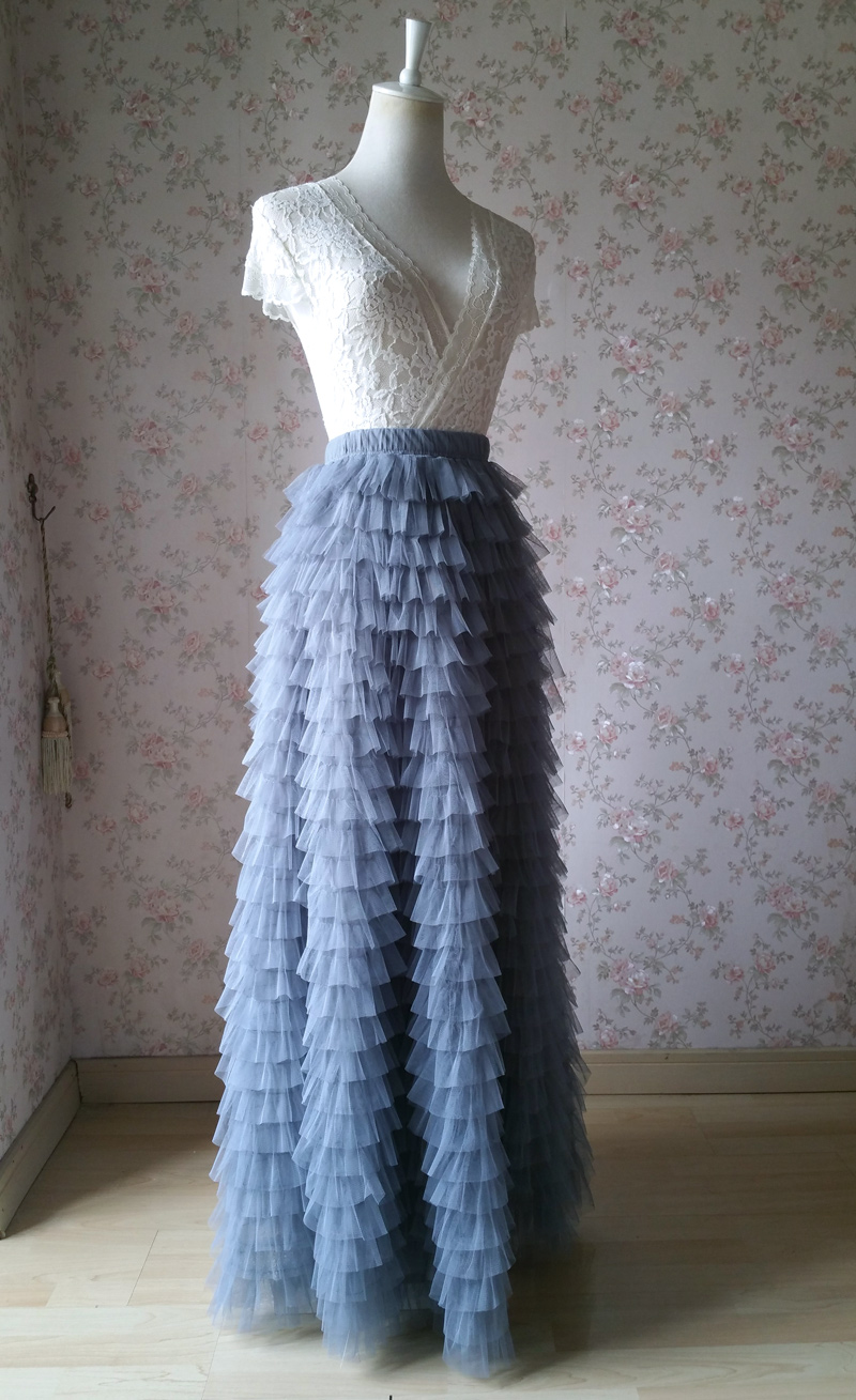 Tiered Tulle Skirt GRAY High Waisted Tulle Skirt Outfit Custom Plus Size Gray Formal Skirt Wedding Photography Bridal Skirt
