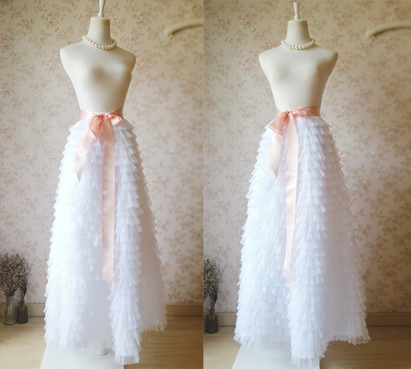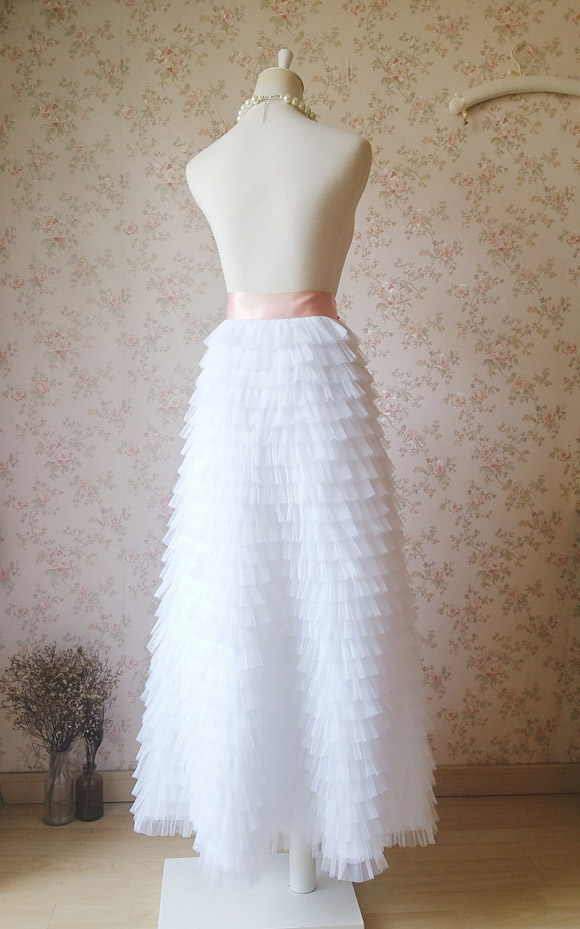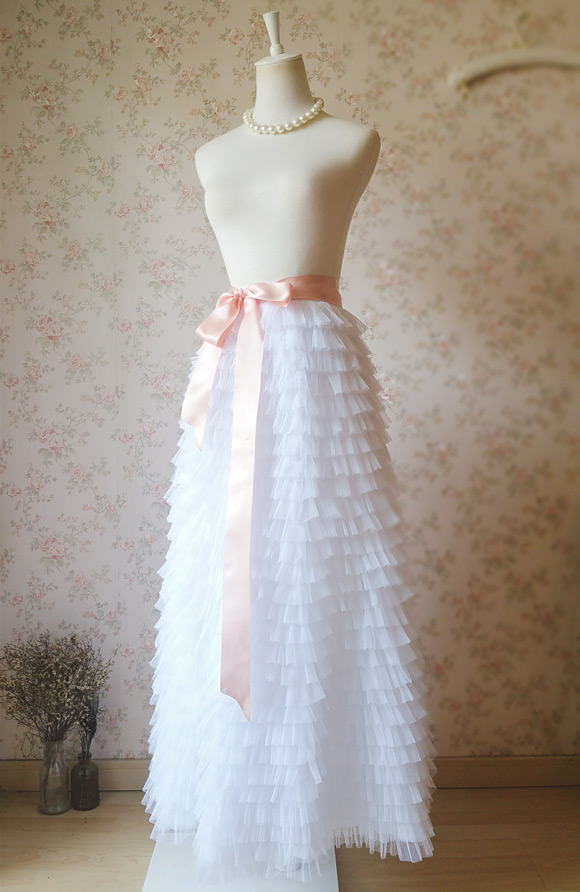 WHITE Tiered Tulle Skirt White Maxi Tulle Skirt Wedding Bridal White Outfit Custom Plus Size Formal Skirt Ballerina Skirt