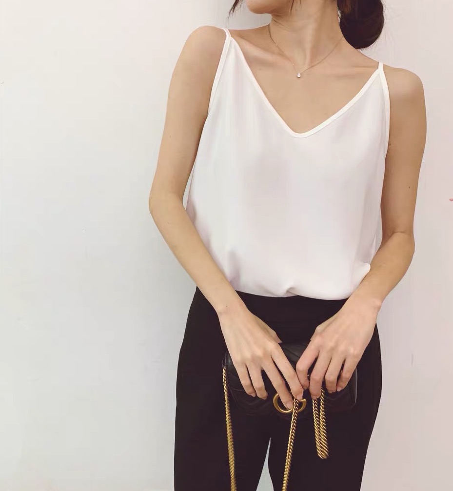 Women Simple Chic Black V Neck Chiffon Tanks Tops Women Chiffon Cami Camisole Loose Shirts