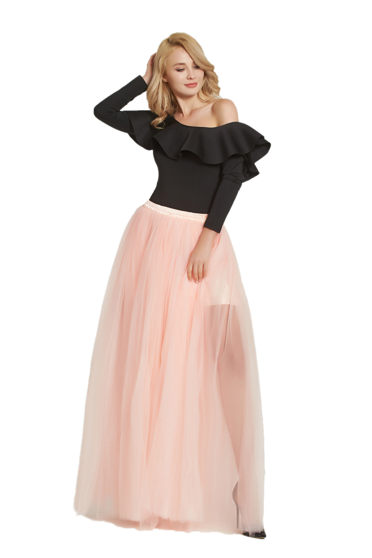 Blush Pink Adult Long Maxi Tulle Skirt High Waisted Open Skirt Sexy Slit Tulle Skirt Blush Wedding Tulle Skirt Tulle Bridesmaid Skirts Elastic Waist