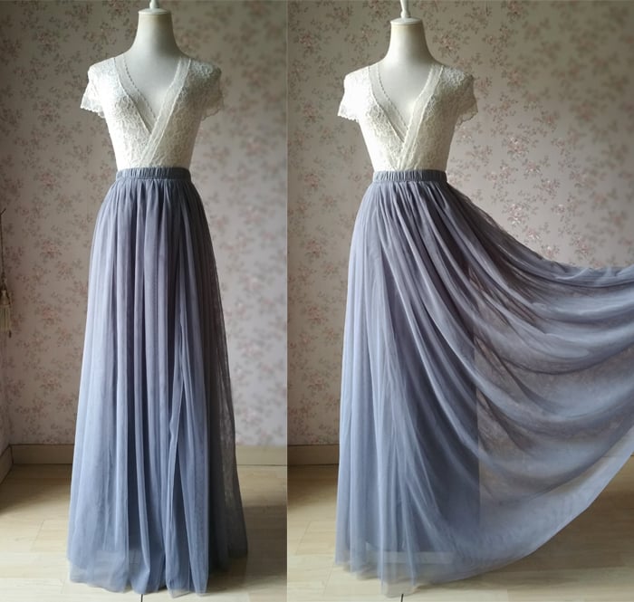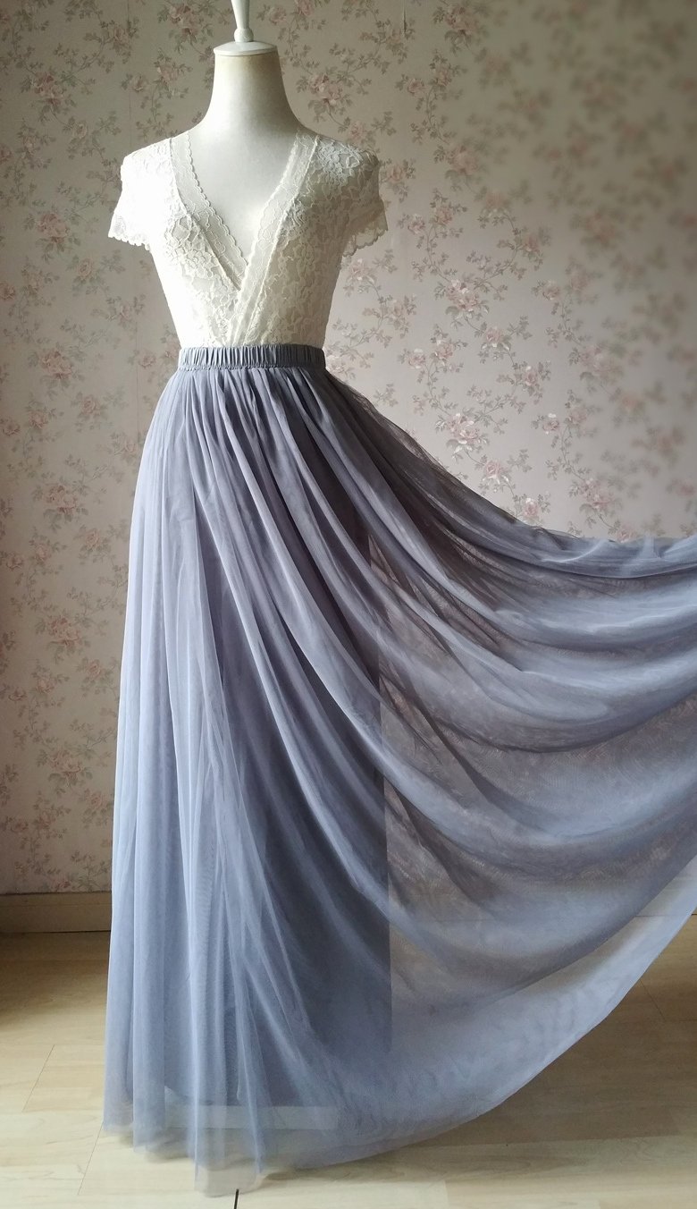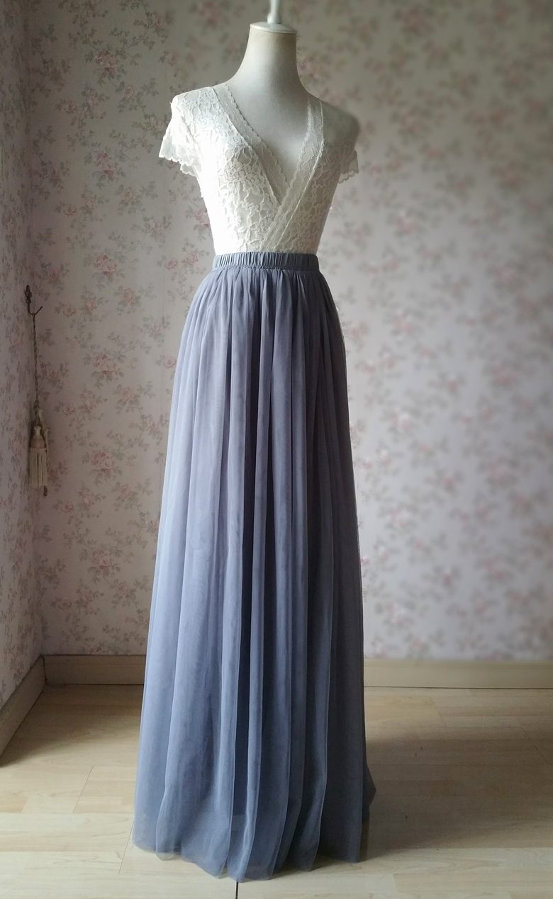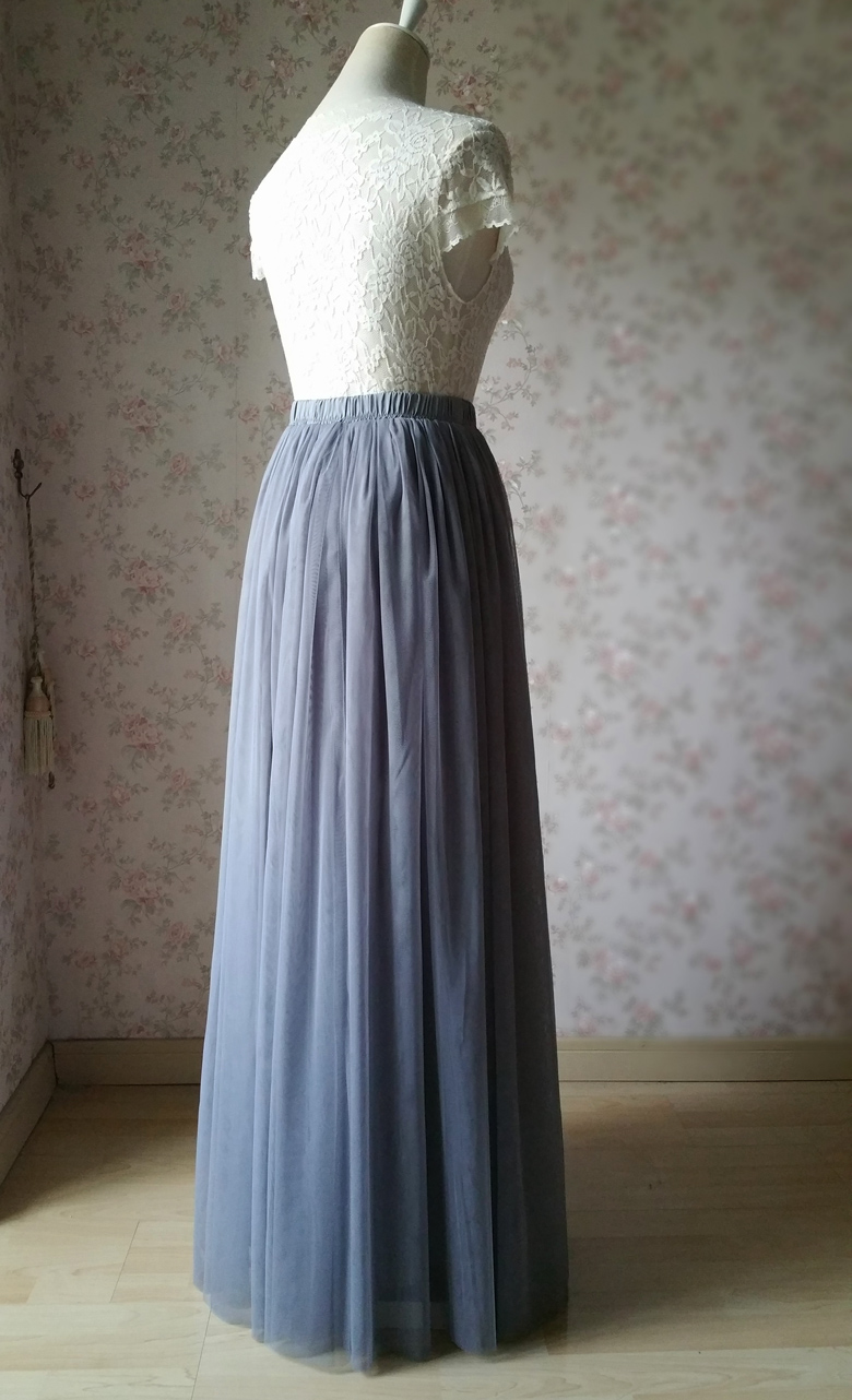 Gray Long Tulle Skirt High Waist Gray Wedding Separate Gray Bridesmaid Tulle Tutu Skirt Maxi Full Floor Length Plus Size Tulle Outfit