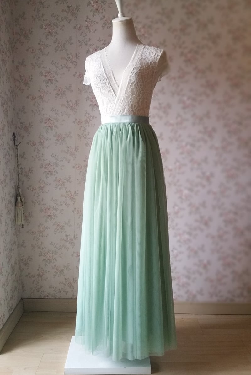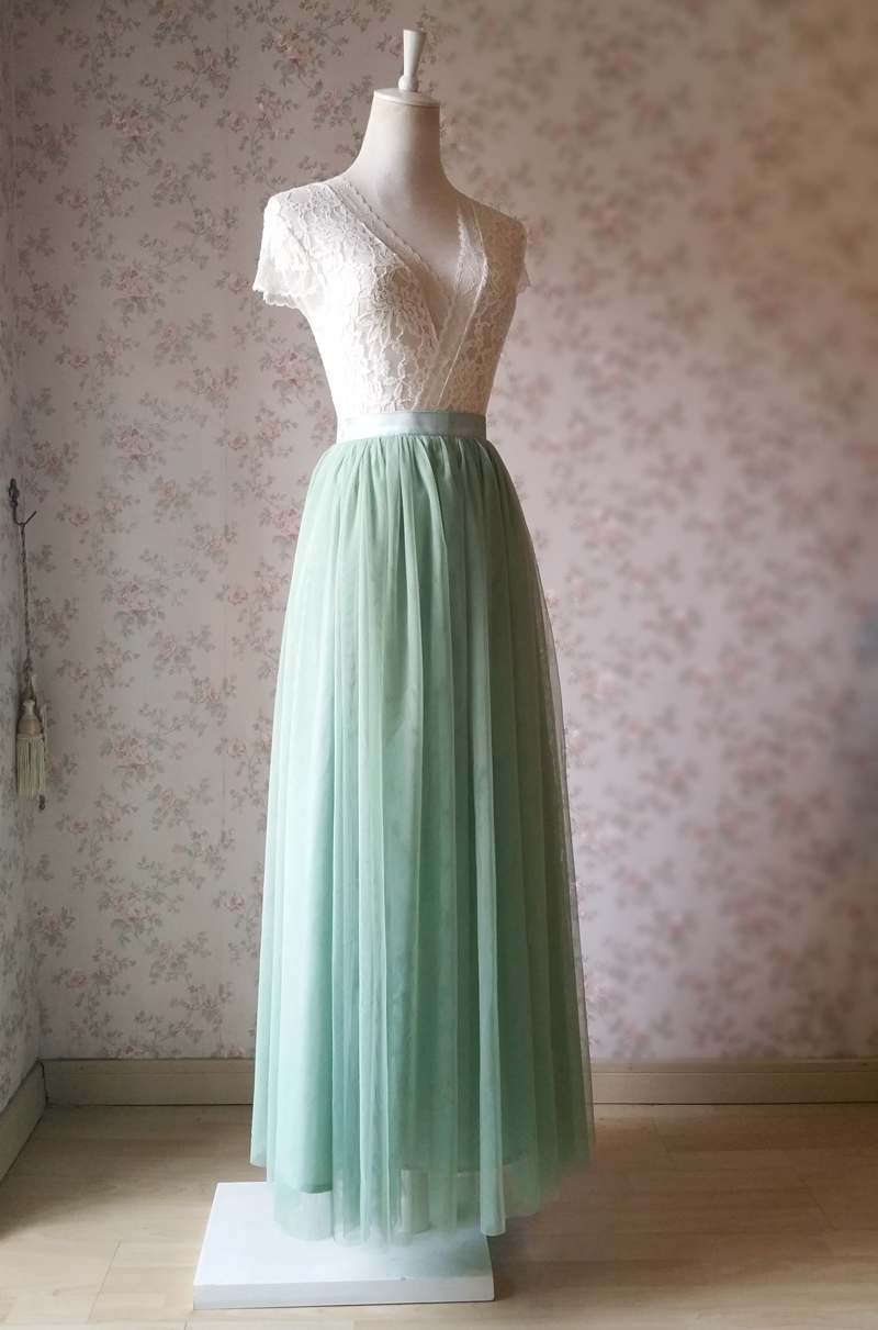SAGE GREEN Floor Length Tutu Skirt Sage Bridesmaid Maxi Tulle Skirt Plus Size Custom Party Maxi Skirt