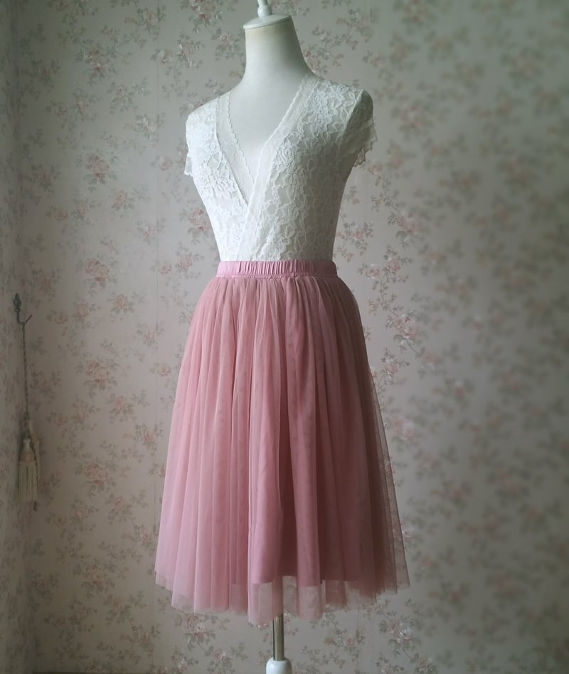 ROSE PINK Midi Tulle Skirt Rose Pink Midi Length Tulle Tutu Skirt Bridesmaid Midi Tulle Tutu Skirt Outfits Pink Wedding Skirt Custom Plus Size
