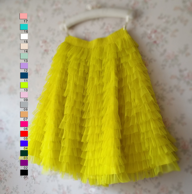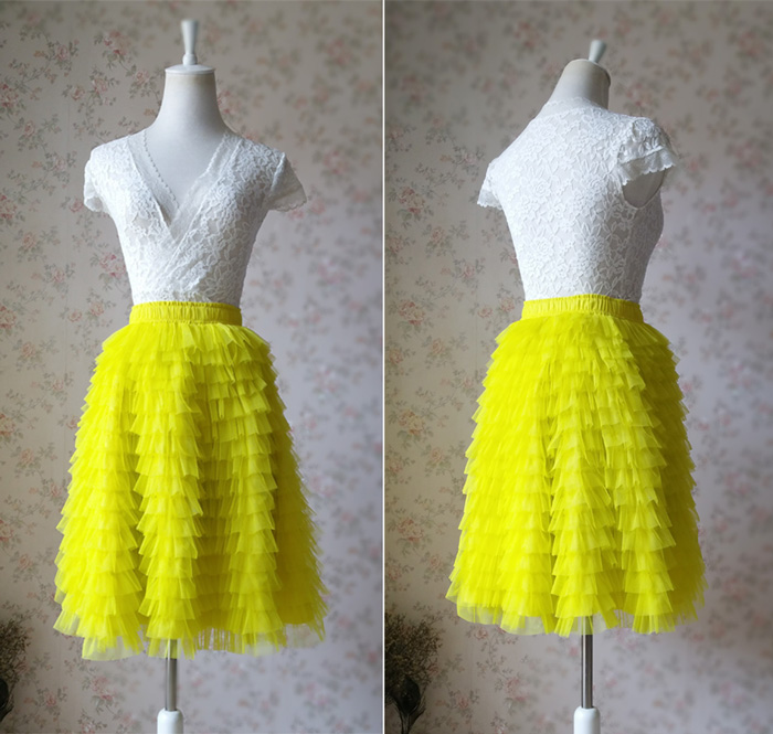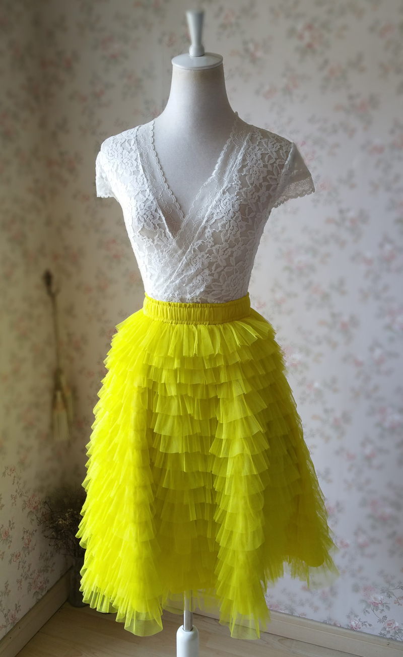 Women Tiered Midi Skirt Lemon Yellow Midi Tulle Skirt Yellow Wedding Party Outfit Custom Plus Size Party Prom Skirt Princess Skirt